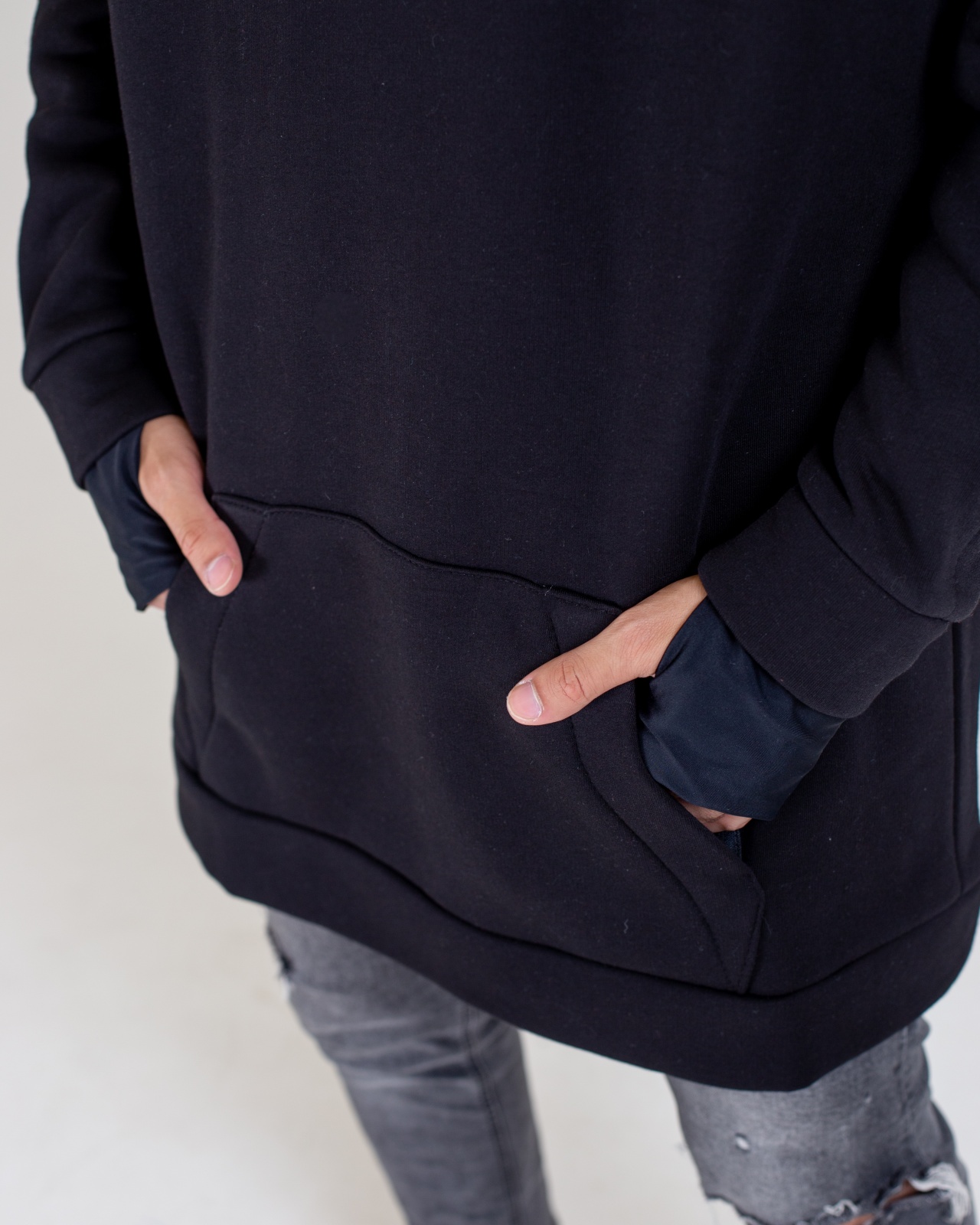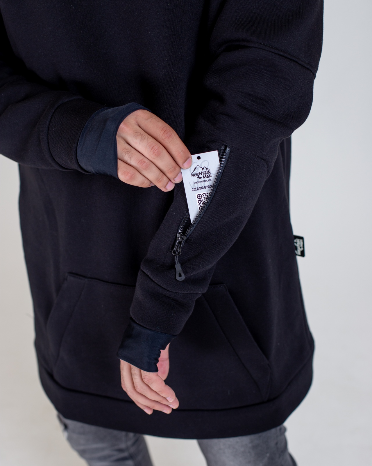 • Карман-кенгуру на молниях для телефона и других мелочей.